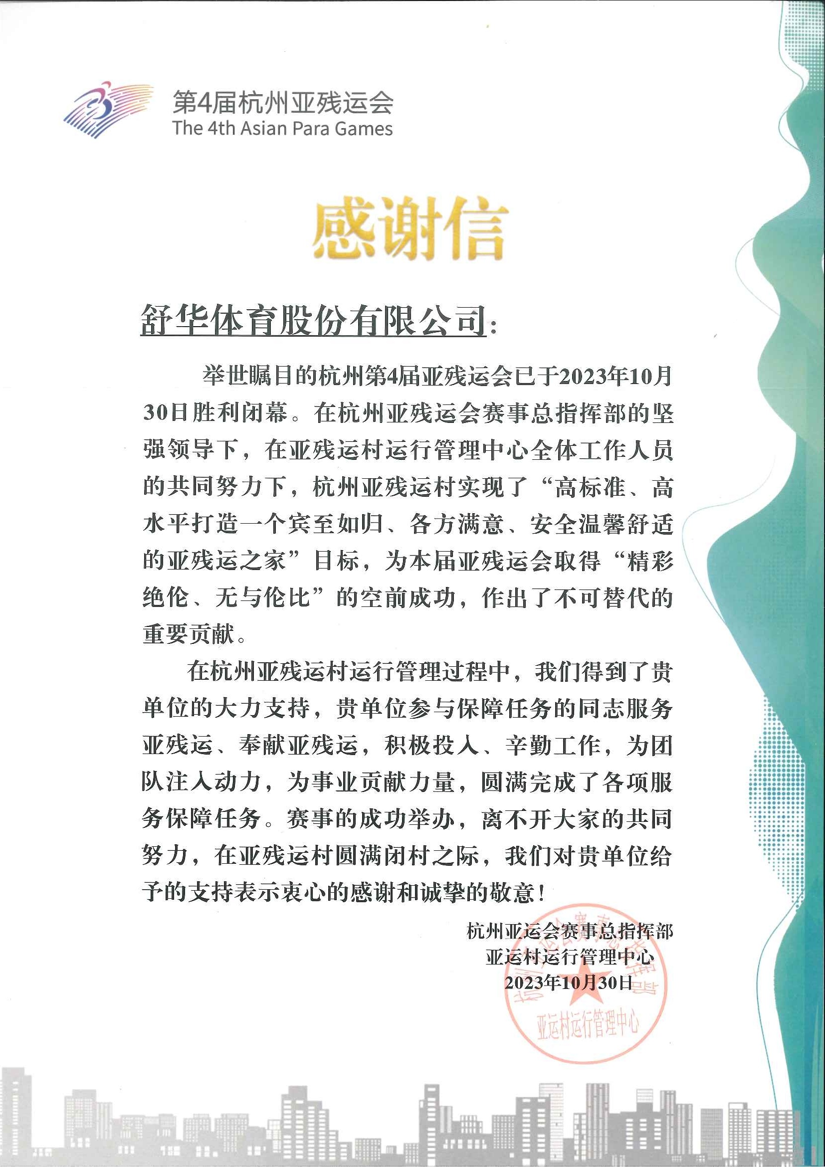 In May, SHUHUA was honored as ”China’s Top 20 Sports Goods Enterprise”